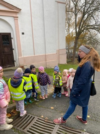 Okružní vycházka přes zahrádkářskou kolonii ke kostelu v Mojžíři a zpět okolo školy - Berušky