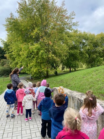 Prodloužená vycházka - seznámení s okolím MŠ, pozorování podzimní přírody, sběr přírodnin, hra s nimi - Berušky
