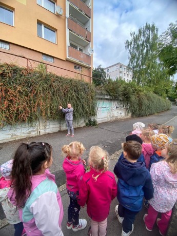 Prodloužená vycházka - seznámení s okolím MŠ, pozorování podzimní přírody, sběr přírodnin, hra s nimi - Berušky